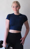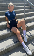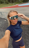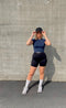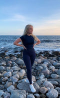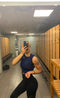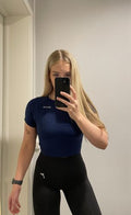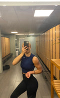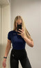 En top jeg elsker specielt nu om sommeren! En behagelig top, der sidder godt under en træning. Jeg elsker også farven navy blue🤩
