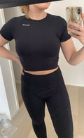 Skøn cropped træningstop der sidder godt uden at glide op. Stoffet er behageligt, strækbart og åndbart. Jeg bestilte min i S og den sidder perfekt, vil helt sikkert bestille flere💙