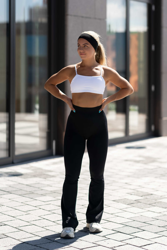 Scrunch Flared Leggings er lavet af blødt, åndbart og fugttransporterende stof med flare forneden . Bukserne er perfekte til træning, yoga eller som behagelige hverdagsbukser.